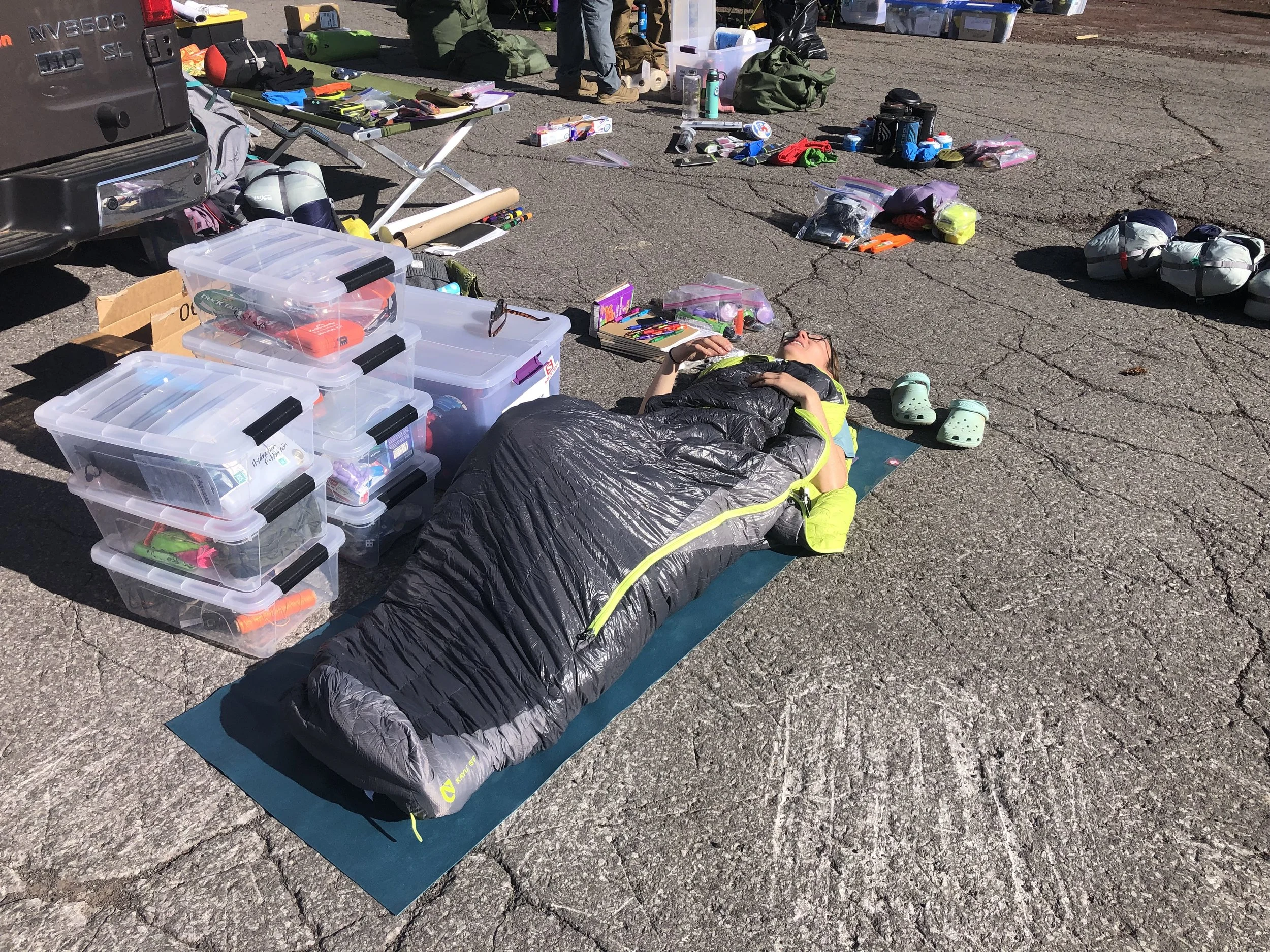 Our first day was filled with getting acquainted to gear and each other. The participants knocked it out of the park and have already started to bond and express themselves. Amongst these eight teens we divvied up the amazing equipment that has been donated by our generous corporate partners, and it will shortly be put to great use. Spirits are high and there is a sense of friendship and excitement in the air. Our day ended with some live music and stretching, and the volunteers could hear the teens’ whispered conversations in their tents as they extended well past lights-out.